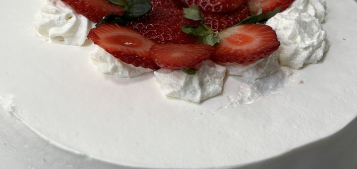 Receita de Torta recheada de Prestígio com Morango