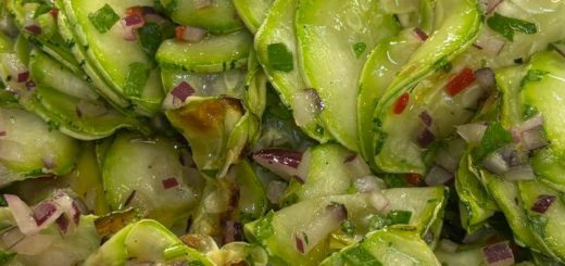 Ingredientes: 1 abobrinha laminada Cebola roxa picadinha 1/2 pimenta dedo de moça 2 colheres de sopa de vinagre Salsinha picada Azeite bastante Modo de preparo: Corte a abobrinha em lâminas finas e leve pra...