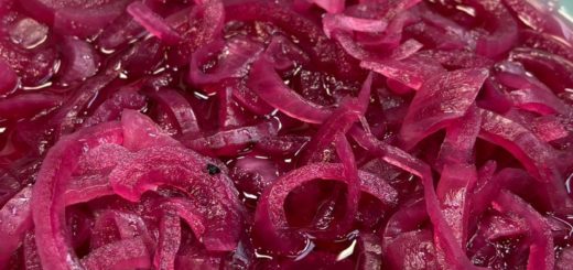 Ingredientes: 300g cebola roxa 100g vinagre de álcool 20g sal refinado 200g água 80g Açúcar Pimenta do reino a gosto Modo de Preparo: Em uma panela adicione o vinagre de álcool, açúcar, sal, a...