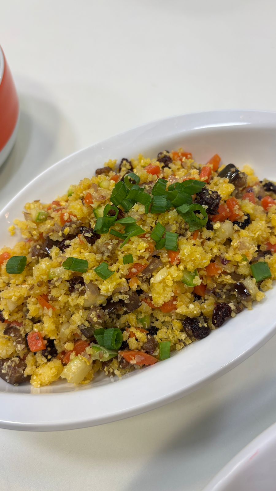 – Junte o cuscuz já pronto, misture e acerte o sal.