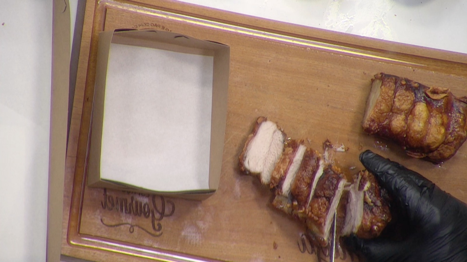 Seque bem a pele da pancetta com papel toalha — isso é essencial para que fique crocante.
