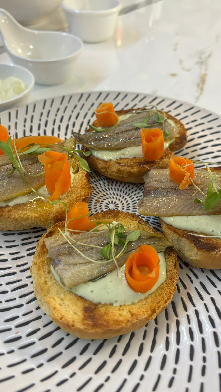 Para montar: aqueça a torrada, coloque a lactonese de coentro, a sardinha e as fitas de cenoura. Sirva imediatamente.