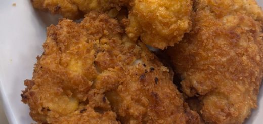 Ingredientes 500 gramas de peito de frango em tiras grandes (temperado a gosto) 1 xícara de farinha de trigo 1/2 xícara de amido de milho 1 colher de sopa rasa de sal 1 colher...