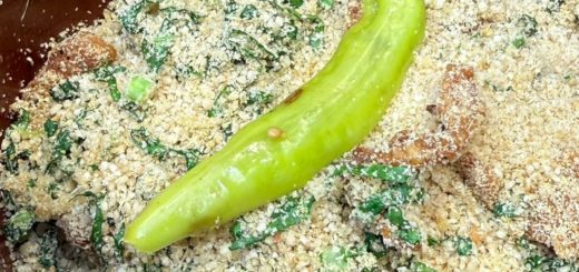 Ingredientes: pele de frango limpa e cortada em pedaços pequenos Pimenta-do-reino a gosto Pimenta calabresa a gosto Sal a gosto 4 dentes de alho picados 1 cebola picada 3 folhas de couve picadas Cheiro...
