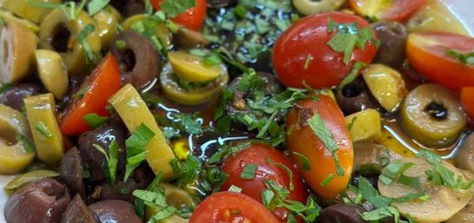 Ingredientes: Azeitona verde laminada Azeitona preta Azeite Vinagre balsâmico Maratá Salsinha Pimenta calabresa Tomates cereja Salsinha Limão Modo de preparo: Em um prato de servir coloque as azeitonas, tomate e tempere com voa demais...