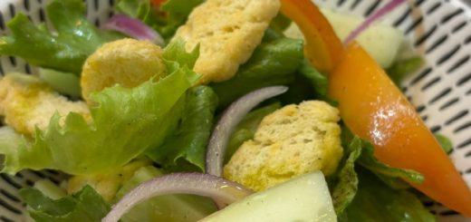 Ingredientes: Alface americana Tomate Pepino Croutons Limão Modo de Preparo: 1 Lave bem as folhas de alface americana e rasgue-as em pedaços. 2 Corte o tomate em rodelas ou cubos, e o pepino em...