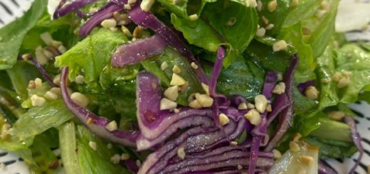 Ingredientes: Cajuína 1 unidade Repolho roxo 1 xícara Cebola branca ½ xícara Alface americana ½ pé Tomate cereja ½ xícara Castanha de caju triturada 2 colheres de sopa Azeite extra virgem 100 ml (o...